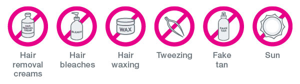 Do not bleach your hair as there’s no pigment in bleached hair for the laser to target.