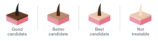 We have invested in the safest & most effective lasers to allow us to treat all skin types & ethnicities. Laser treatment is most effective on darker hair as it is best absorbed when there’s more pigment. Lasers presently don't work on grey or white hair.